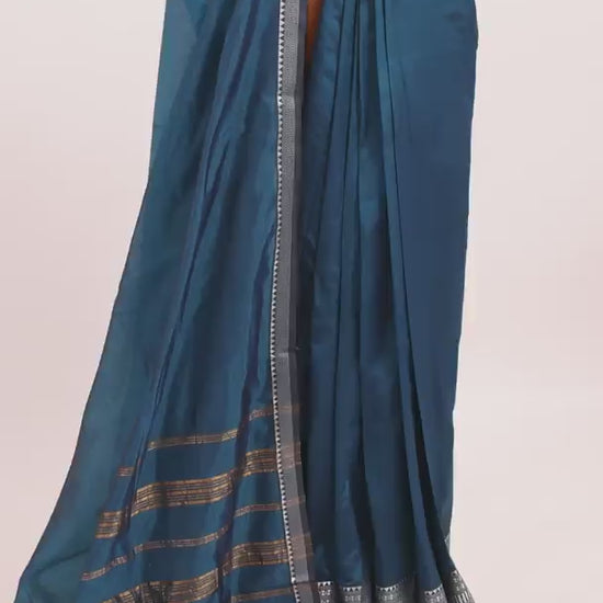 Elegant in hue and rooted in tradition, this handwoven blue Chettinad cotton silk saree is finished with a classic gold zari border, making it a timeless addition to your saree collection. The rich blue shade offers a serene yet striking presence, perfect for both everyday grace and festive simplicity.