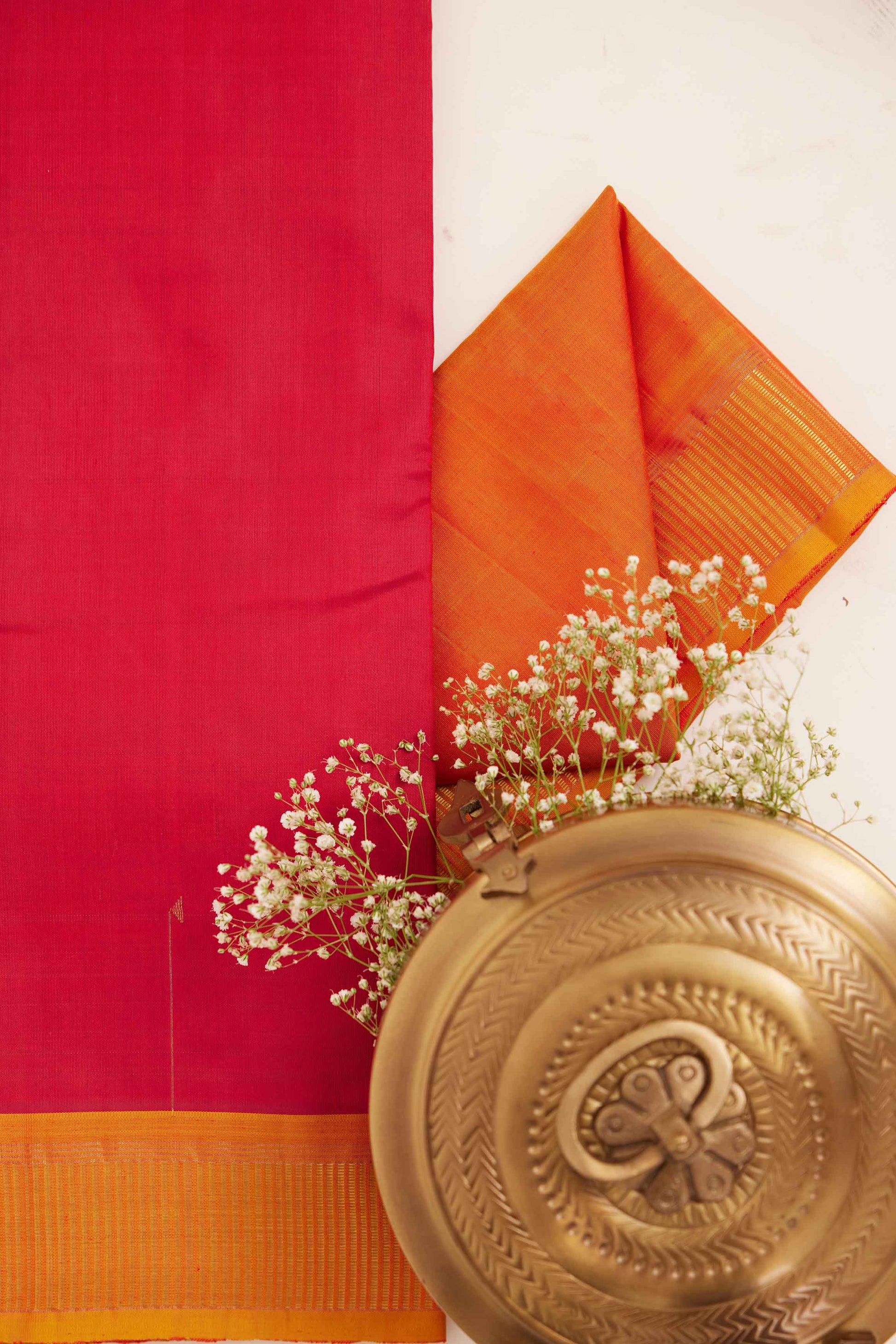 - Colour: Deep red with orange border & pallu