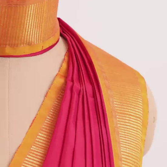 Deep Red Korvai Silk Saree with Orange Border and Pallu
