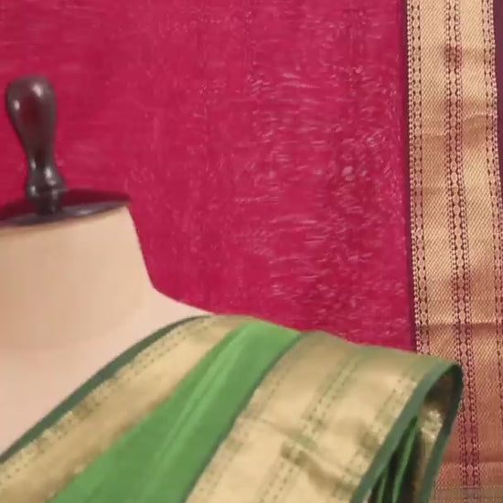 Green Maheshwari Cotton Silk Saree with Pink Pallu & Zari Border