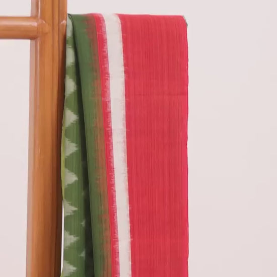At Handloom Origins, every saree is handpicked with care and an eye for detail—rooted in a personal love for drapes that speak of culture, craft, and quiet elegance. This olive and red Pochampally cotton saree is no exception.