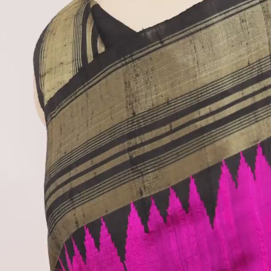 Pink Jute Silk Saree with Black & Gold Zari Pallu