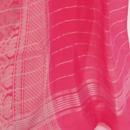 Pink Mangalagiri Cotton Silk Saree with Big Zari Border