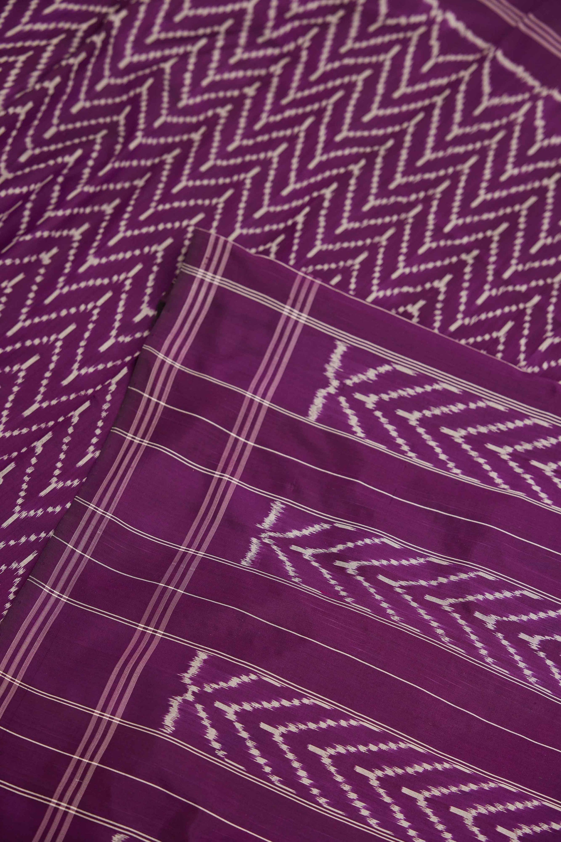There’s a quiet power in a handwoven silk saree—especially one that carries the legacy of generations of weavers. This plum purple Pochampally silk saree is a tribute to the richness of South India’s textile heritage, featuring delicate white double Ikat patterns woven across a luxurious base.