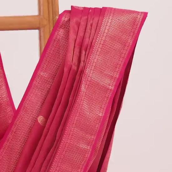 Luminous and timeless, this handwoven red Maheshwari tissue silk saree is a classic that radiates understated luxury. The vibrant red body is intricately woven with gold buttas, while a rich gold zari border and pallu add an elegant, festive sheen—perfect for special occasions where tradition meets celebration.
