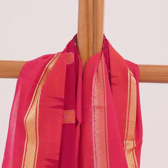 Red & Orange Geometric Pochampally Cotton Ikat Saree